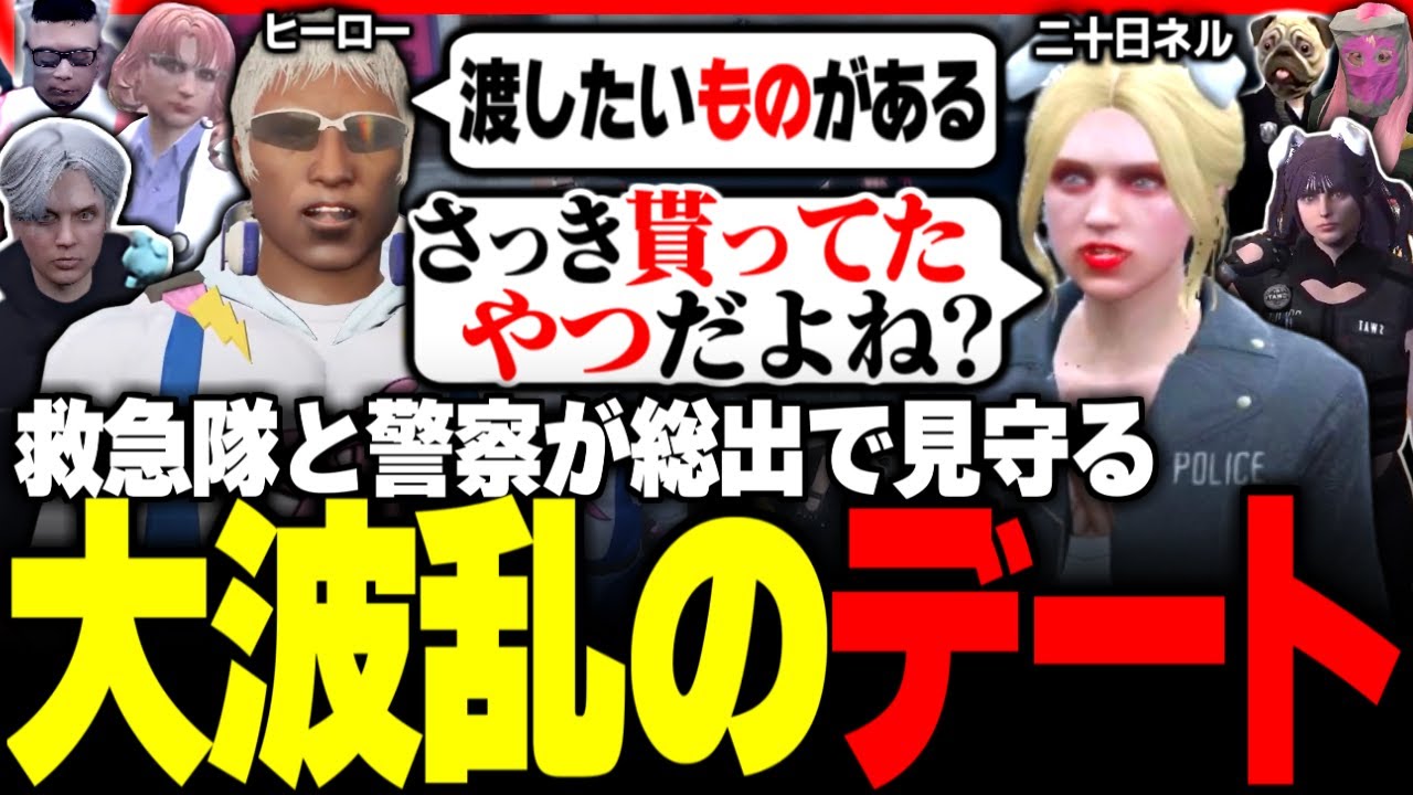 【#ストグラ】救急隊と警察が見守る中、二十日ネルと大波乱のデートを繰り広げるヒーロー【ユッカ/雷堂ましろ/天羽よつは/赤ちゃんキャップ/なずぴ/MONDO/さぶ郎/ストグラ切り抜き/ストグラ救急隊】